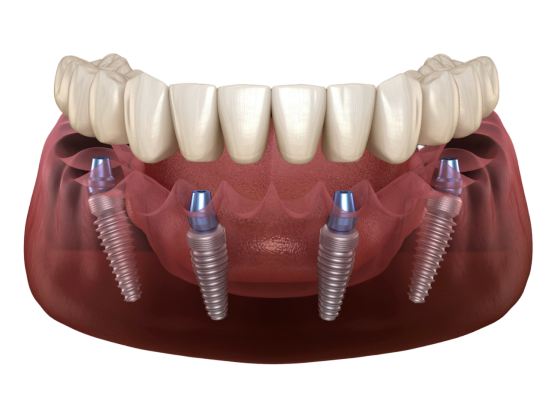После того, как завершится период остеоинтеграции, т.е. приживления имплантов, на них установят постоянный протез.